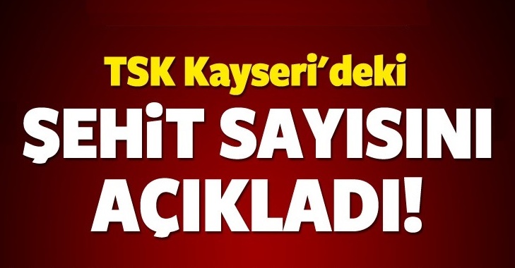 Kayseri’de bombalı araçla gerçekleştirilen terör saldırısıyla ilgili Türk Silahlı Kuvvetleri ‘’13 askerin şehit olduğunu, 48 askerin yaralandığını’’ açıkladı.