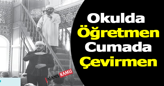 Antalya'da işitme engelliler okulunda matematik ögretk meni olan Mustafa Sulubulut, engelliler için cuma hutbesini de işaret diline çevirerek aktarıyor.