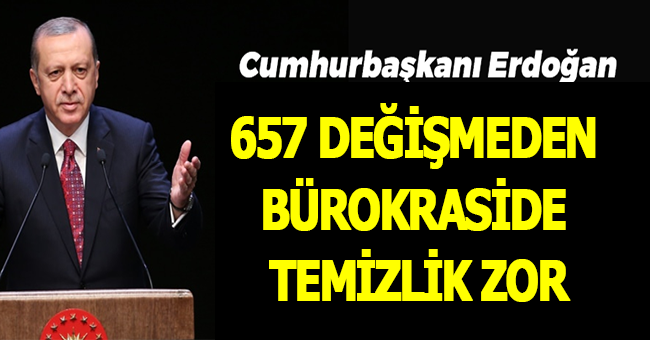Cumhurbaşkanı Recep Tayyip Erdoğan, Azerbaycan dönüşü gazetecilere açıklama yaptı. Erdoğan yaptığı açıklamada 657 Devlet Memurları Kanunu’nun tepeden tırnağa değişmesi gerektiğini belirtti.