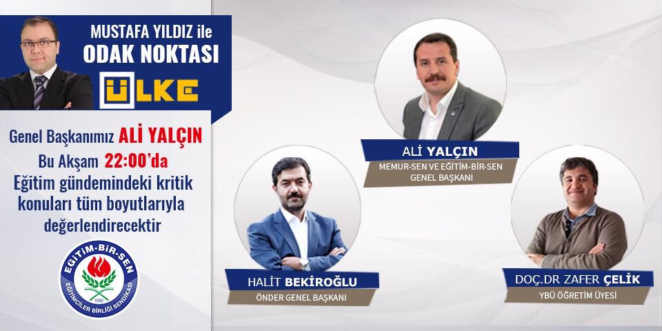 Mustafa YILDIZ’ın sunduğu odak nktası programına Ali YALÇIN, Önder Genel Başkanı Halit BEKİROĞLU ve Do. Dir. Zafer ÇELİK de katılacak.