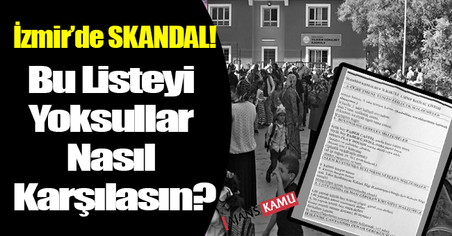 İzmir’in Konak ilçesinde bulunan Yıldırım Kemal Bey İlkokulunda birinci sınıfa yeni başlayan öğrencilerin alması için velilere markalarının da belirtildiği 27 maddelik bir kırtasiye listesi verildi. Maliyeti 150-200 lirayı bulan listeye tepki gösteren veliler, listenin tamamını alamadıklarını dile getirdi. Toplamda 27 maddenin bulunduğu kırtasiye listesi, öğretmene teslim edilmesi gereken ve öğrencide bulunması gereken malzemeler şeklinde ayrılmış. Öğretmene verilecek malzemeler arasında, 5 adet kırmızı kalem, 5 adet kurşun kalem, 2’li kağıt havlu, 1 adet kaliteli sıvı sabun, 3’er adet siyah ve kırmızı tüplü tahta kalemi ve 1 top çizgisiz kağıt bulunuyor. Öğrencilerde bulunması gereken kısımda ise, kalemlerin, pastel boyaların, oyun hamurunun ve yapıştırıcının markası kalın harflerle belirtiliyor.