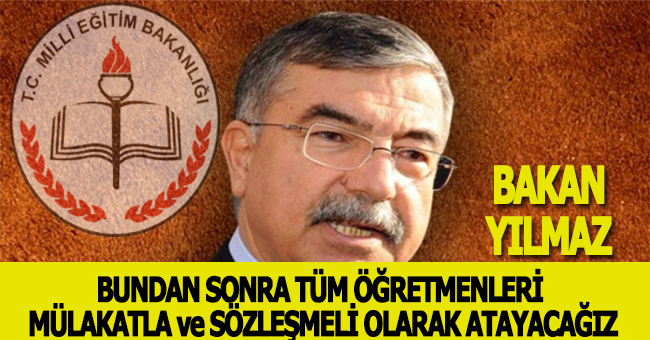 Milli EĞitim Bakanı İsmet YILMAZ tüm eğitimcilerin tepkisini çekecek bir açıklama yaptı: ‘Bından Bundan Sonra Tüm Öğretmen Atamaları sözleşmeli olarka Mülakatla Yapılacak’ dedi.