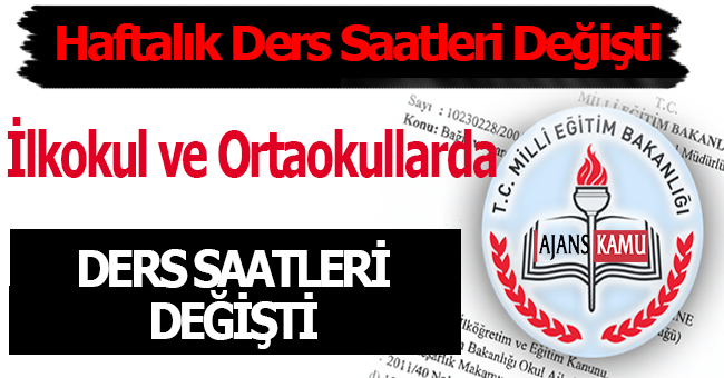İlköğretim Kurumları (İlkokul ve Ortaokul) Haftalık Ders Çizelgeleri Değişti.
