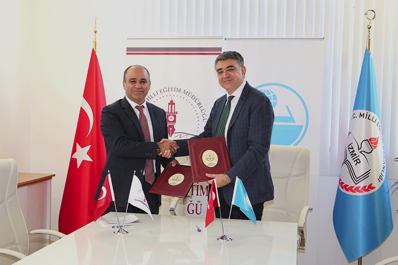 İzmir İl Milli Eğitim Müdürlüğü’nde düzenlenen törende İl Milli Eğitim Müdürü Ömer Yahşi ve TODAİE Genel Müdürü Onur Ender Aslan, iki kurum arasında iş birliği protokolünü imzaladı.