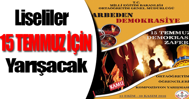 Ortaöğretim Genel Müdürlüğünce ‘Darbeden Demokrasi̇ye: 15 Temmuz Demokrasi̇ Zaferi̇’ konulu ortaöğreti̇m öğrenci̇leri̇ için kompozi̇syon yarışması düzenlendi.