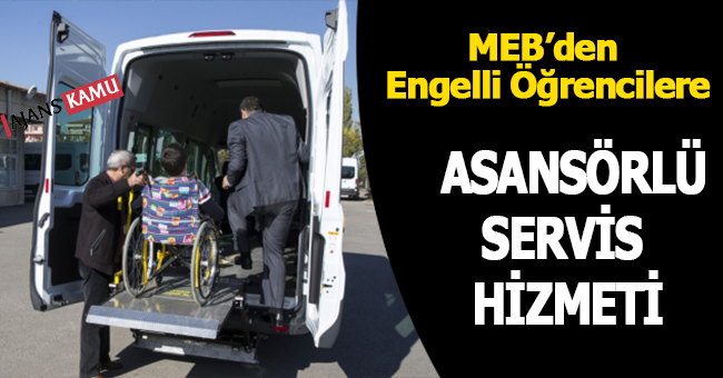Millî Eğitim Bakanlığı ile Ankara Valiliği iş birliğinde yürütülen uygulamayla fiziksel engelli öğrenciler, evlerinden okullarına, okullarından evlerine, erişebilirlik standartlarına uygun, kimsenin yardımı olmadan asansörlü servis araçlarıyla taşınacak.