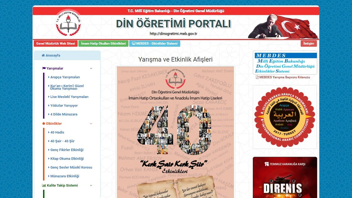 Millî Eğitim Bakanlığı Din Öğretimi Genel Müdürlüğünce, gerçekleştirilen akademik, bilimsel, mesleki, sosyal, kültürel, sanatsal, sportif yarışma ve etkinlikler için “Din Öğretimi Portalı” oluşturuldu.