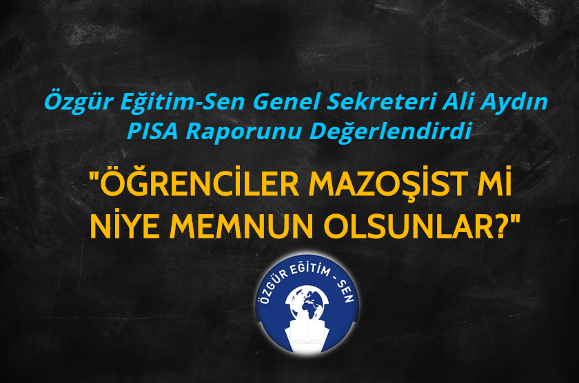 Özgür Eğitim-Sen Genel Sekreteri Ali Aydın OECD PISA 2015 ‘Öğrenci Refahı’ başlıklı raporunda Türkiye’nin 28 ülke içerisisnde öğrenci memnuniyeti açısısndan son sırada yer almasını değerlendirdi.
