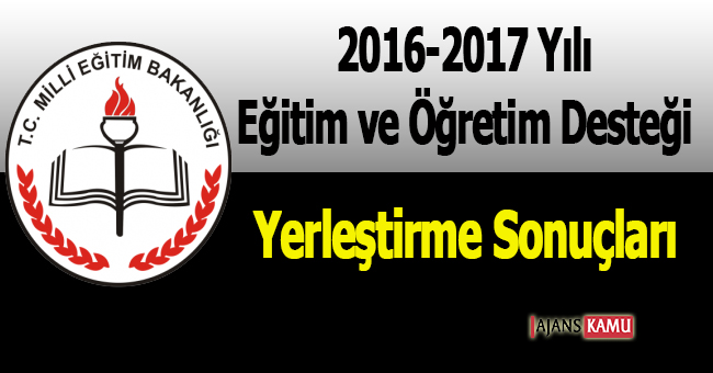Milli Eğitim Bakanlığı 2016-2017 yılı, eğitim ve öğretim desteği yerleştirme sonuçlarını açıkladı.