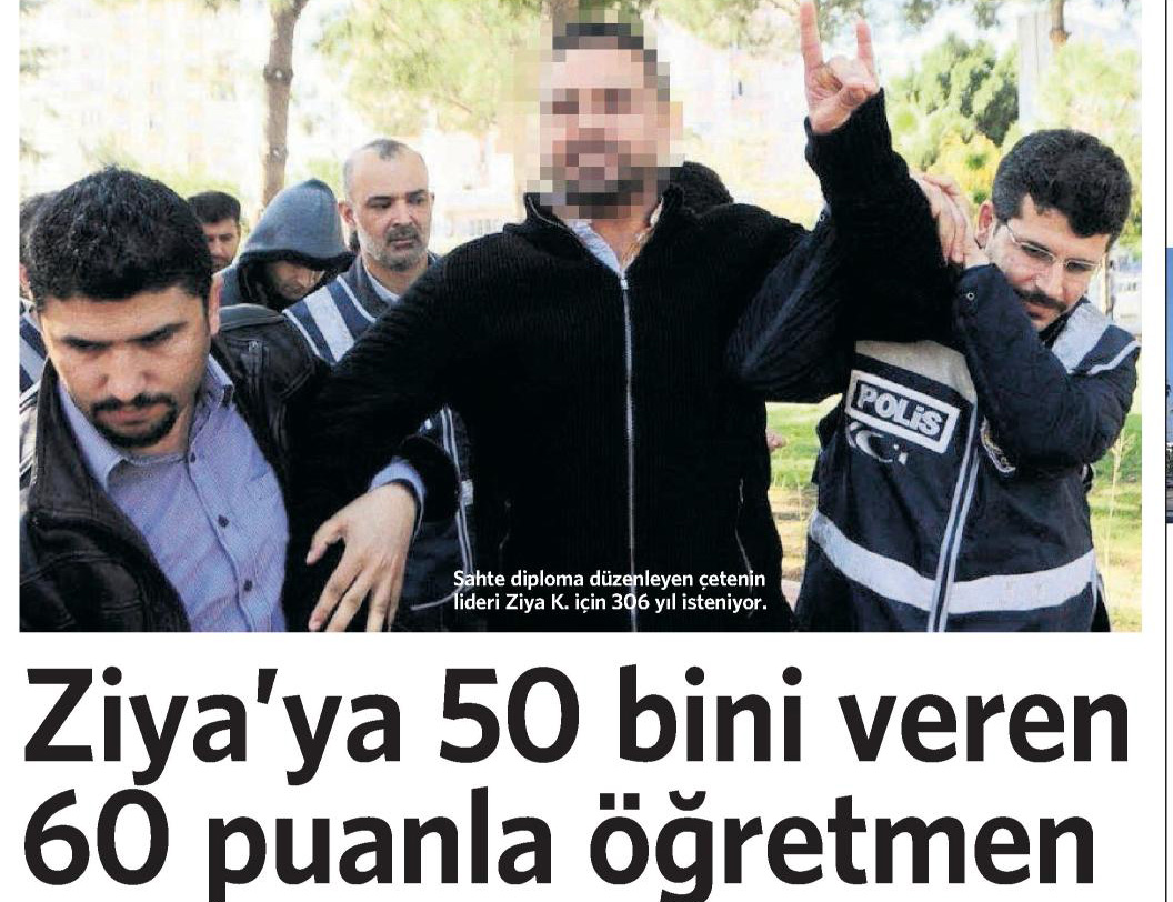 Resim iş öğretmenliği bölümü mezunuKilis’te bir okula atamasının yapıldığını ve 35 bin lira verdiğini, 4 ay çalıştığını ileri sürdü. İddianamenin sonuç bölümünde, her bir sahte diploma için ortalama 6 bin-50 bin lira para karşılığında yapıldığının tespit edildiği aktarıldı. Ziya K. için toplam 306 yıl, çete üyesi Düzce Üniversitesi öğretim üyesi  hakkında 51 sene, sanıklardan 4’ü için 27’şer yıl, l’ine 18 sene, 12’sine 15’er yıl, 24’üne 12’şer sene ve l’ine de 3 yıl hapis istendi.