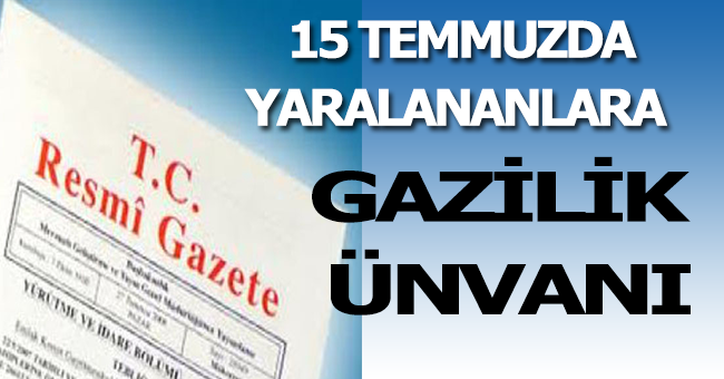 675 sayılı Olağanüstü Hal Kapsamında Bazı Tedbirler Alınması Hakkında Kanun Hükmünde Kararname’ye göre, 15 Temmuz darbe girişiminde yaralanan kamu görevlileri ve sivil vatandaşlara yaralanma derecesine bakılmaksızın gazilik unvanı verilecek.