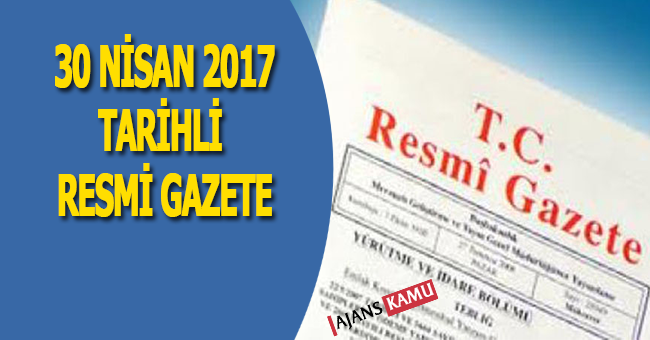İşte 30 Nisan 2017 Tarihli ve 30053 Sayılı Resmî Gazete