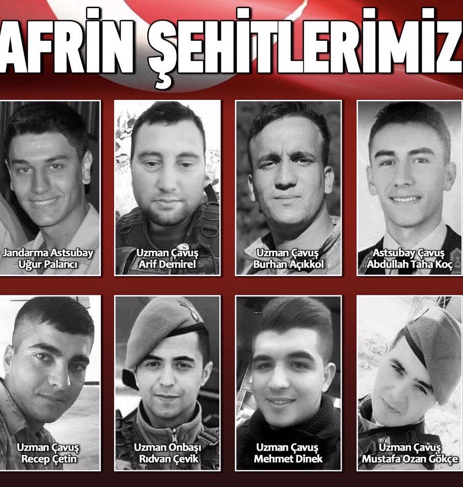 TSK’nın Afrin’de sürdürdüğü Zeytin Dalı Harekatı 42. gününe girerken. Dün bölgeden gelen acı haber tüm Türkiye’nin yüreğini dağladı. Afrin’in kuzeybatı kırsalında, Hatay’daki Akbaba Hudut Karakolu’nun karşısına düşen Mehmedli, Bilalko ve El Maski köylerinin arasındaki 1083 rakımlı tepeye dün sabah teröristler sızma girişiminde bulundu. Jandarma ve Polis Özel Harekât timleri ile korucular, teröristleri püskürttü.