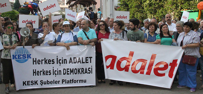 CHP Milletvekili Enis Berberoğlu’nun tutuklanması sonrası ‘Adalet’ yürüyüşü başlatan Genel Başkan Kemal Kılıçdaroğlu’na destek için her gün Sabri Yalım Parkı’nda saat 18:00 ile 18:30 arasında ‘adalet’ eylemi başlatan CHP İl örgütü önceki gün 3. Eylemini gerçekleştirdi. CHP örgütüne KESK üyeleri de destek verdi ve basın açıklaması yaptı. Eyleme İl Başkanı Cengiz Sarıbay, İl Kadın Kolları Başkanı Sevim Pekyörür, KESK Dönem Sözcüsü Yener Çalışkan, Eğitim Sen Başkanı Hicran Turan, partililer ve sendika temsilcileri katıldı.