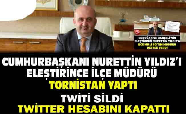 Bu gelişmelerin ardından Nurettin Yıldız’a destek veren Küçükçekmece İlçe Milli Eğitim Müdürü Cemal Yılmaz, Nurettin Yıldız’a destek verdiği mesajlarını sildi ve sosyal medya hesabını kapattı.