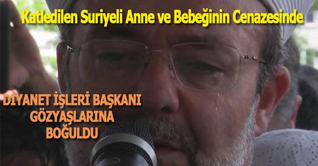 Cenaze namazını kıldıran Diyanet İşleri Başkanı Prof. Dr. Mehmet Görmez’de namaz öncesi ve sonrası gözyaşlarına hakim olamadı. Görmez, burada yaptığı konuşmada, bugün sadece bir cenaze namazı kılmadıklarını aynı zamanda bütün insanlığı, insanlığından utandıracak bir vahşete şahit olduklarını belirterek, ‘Bugün sadece bağrında ümmedi Muhammed’in bir evladını taşıyan bir annenin cenazesini kılmadık, biz sadece biberonunda sütü eksik kalmış 10 aylık bir bebeğin cenaze namazını kılmadık, biz aynı zamanda tarih boyunca mazlumlara umut olmuş aziz milletimizi mahcup edecek, hepimizi üzecek bir vahşete şahit olduk’ ifadelerini kullandı.