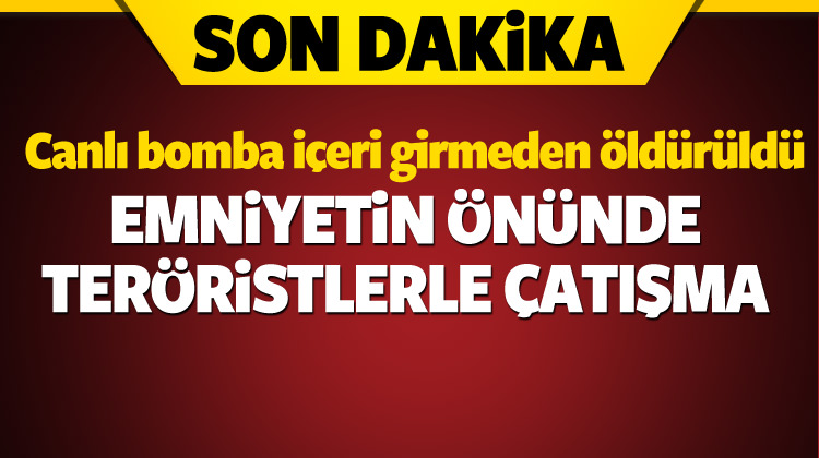 Emniyet’e saldıran teröristlerin canlı bomba eylemi düzenlemeye çalıştığı, görevli polis memurunun durumu fark ederek olaya müdahale ettiği ve bunun üzerine çatışma çıktığı öne sürüldü.