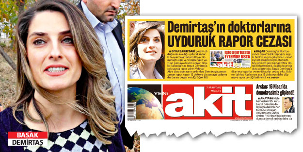 Gazetemiz Akit, dürüstlükten dem vurmayı her fırsatta dillendiren HDP’li Selahattin Demirtaş’ın öğretmen eşinin eğitim-öğretim döneminde 3 bin 50 metre yüksekliğindeki Nemrut Dağı’na tırmanarak dağ yürüyüşü yaptığını, 3 bin kilometreyi aşkın yol kat ederek İtalya’nın başkenti Roma’ya da turistik bir gezide bulunduğunu, son olarak ise Başak Demirtaş’ın eşiyle birlikte İstanbul Büyükada’da bisiklet turu yaptığını ortaya çıkarmıştı. Başak Demirtaş’ın 13 farklı doktordan ‘ülser’ ve ‘diz ağrısı’ gibi çeşitli bahanelerle uzun süreli rapor almasının da ifşa olmasının ardından Akit, Sağlık Bakanlığı’nın terör örgütü PKK destekçisi Op. Dr. Vahhac Alp başta olmak üzere 12 doktora hem dava açtığını hem de kademe durdurma cezası verdiğini, “Vahhac’a ihraç yolu gözüktü”, “Demirtaş’ın doktorlarına uyduruk rapor cezası” başlıklarıyla sürmanşetten duyurmuştu.