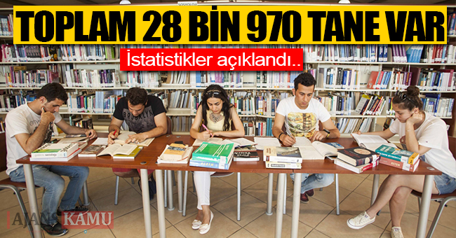 Türkiye genelinde 2016 yılında 1 milli, bin 137 halk, 552 üniversite ve 27 bin 280 örgün ve yaygın eğitim kurumu olmak üzere toplam 28 bin 970 kütüphanenin faaliyet gösterdiği belirlendi. Interpress’in Türkiye İstatistik Kurumu (TÜİK) verilerinden derlediği bilgilere göre, ülkemizde Milli Kütüphanenin 26 bin 996, halk kütüphanelerinin 1 milyon 697 bin 90 ve üniversite kütüphanelerinin 3 milyon 810 bin 634 üyesi bulunurken, Milli Kütüphaneden yararlanan kişi sayısının 636 bin 488, halk kütüphanelerinden yararlanan kişi sayısının ise 23 milyon 266 bin 599 olduğu tespit edildi. Milli Kütüphanedeki kitap sayısının da, 2016 yılında bir önceki yıla göre yüzde 3 artarak 1 milyon 298 bin 952 olduğu görüldü.