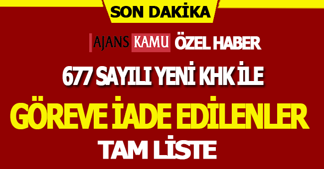 MADDE 2 – (1) Ekli (5) sayılı listede yer alan kamu görevlileri 15/8/2016 tarihli ve 672 sayılı Olağanüstü Hal Kapsamında Kamu Personeline İlişkin Alınan Tedbirlere Dair Kanun Hükmünde Kararname ile 3/10/2016 tarihli ve 675 sayılı Olağanüstü Hal Kapsamında Bazı Tedbirler Alınması Hakkında Kanun Hükmünde Kararnamenin eki listelerin ilgili sıralarından çıkarılmıştır.