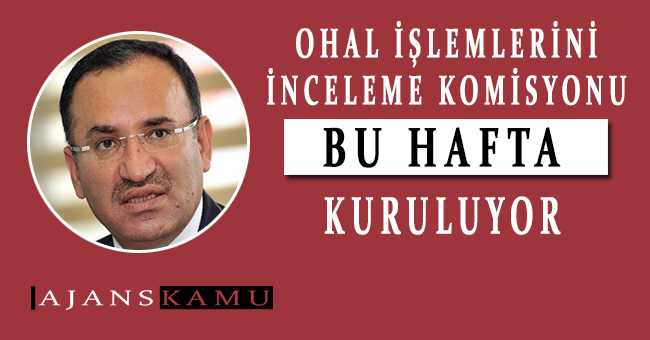 OHAL İşlemleri İnceleme Komisyonu yakında Kuruluyor. Başbakan yardımcısı Nurettin CANİKLi v eadalet Bakanı Bekir BOZDAĞ OHAL işlemleri inceleme komisyonunun bu haft aiçerisinde kurualcağını açıkladı.
