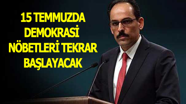 15 Temmuz gecesi yeniden demokrasi nöbeti süreci başlayacağını ifade eden Kalın, şöyle konuştu: