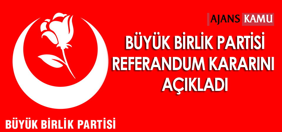 Büyük Birlik Partisi-BBP’nin referandum kararı açıklandı. BBP’den gelen son dakika referandum kararı açıklamasına göre, 16 Nisan’da sandığa gidecek BBP’liler evet oyu kullanacak.