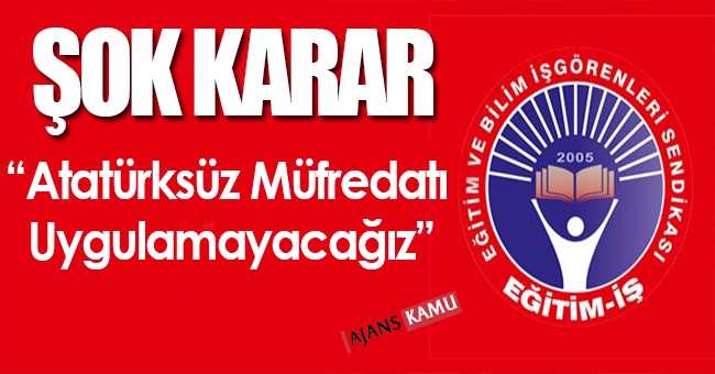 Nasıl Köy Enstitülü Cumhuriyet öğretmenleri Amerikalılarla hazırlanan müfredatı uygulamadıysa, Eğitim-İş’li cumhuriyet öğretmenleri de Atatürksüz, laiklikten ve bilimsellikten uzak yapılacak müfredat değişikliğini uygulamayacaktır.”