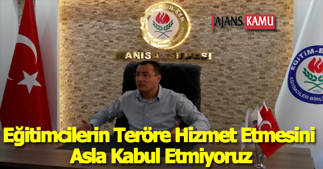Eğitim-Bir-Sen Manisa Şube Başkanı Mesut Öner, ‘İnsanımızın gönlünü ve zihnini bilgi, sevgi, barış, kardeşlik, erdem gibi yüksek insani ve manevi değerlerle doldurmayı amaç edinmesi gereken eğitimcilerin, teröre ve terörist yapılara hizmet etmesini asla kabul etmiyoruz.’ dedi.