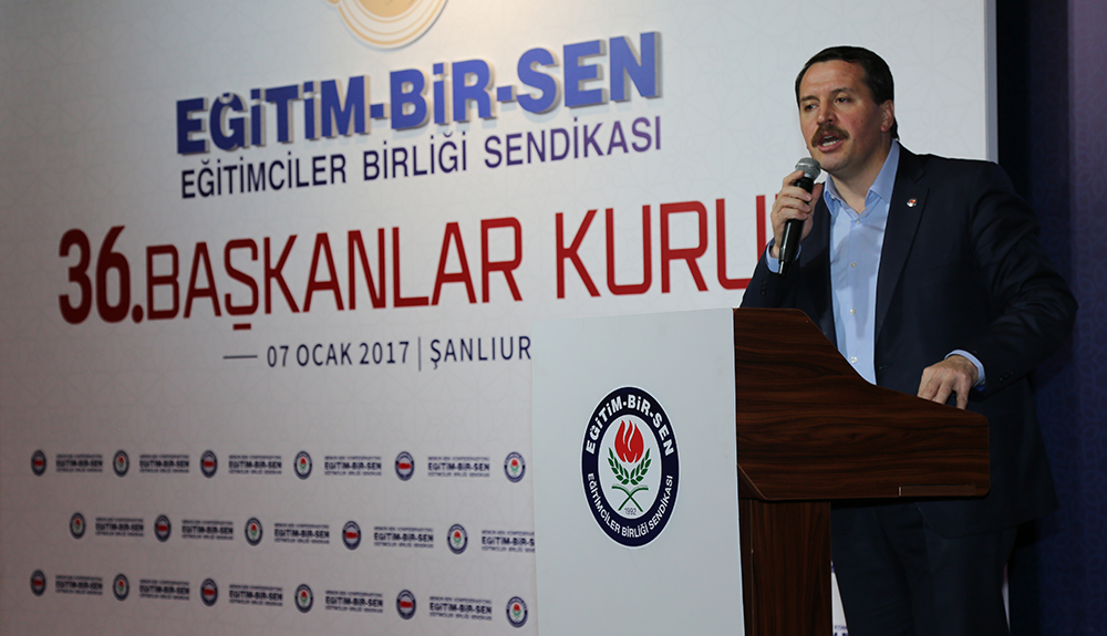 “Biz, ülkemizin sorunlarının çözümünde adaletin, ülkemize ve milletimize yönelik saldırılarda cesaretin temsilcisi olarak sorumluluk aldık. Bu sorumluluğun da gereğini yerine getirdik. Bunun son örneği, FETÖ’nün 15 Temmuz’daki kin ve kan yoğun terörist darbe teşebbüsünde ortaya koyduğumuz duruştur. ‘Meydanları küresel şebekenin hizmetkârlarına, ihanet hizmeti hareketi unsurlarına bırakmayacağız. Milletin iradesini milletimizle birlikte koruyacağız’ çağrısıyla teşkilatına alanları, meydanları, caddeleri işaret eden biz olduk. Eskilerin deyimiyle ‘Keskin bıçak olmak için çok çekiç yemek gerekir.’ 28 Şubat öncesinde, 28 Şubat’ta ve sonrasında millete ve bize vurulan darbelerin, bizde ürettiği irade ve bilinçle, sonu vesayet, darbe, cunta olan her süreci keseriz, heveslilerinin önüne geçeriz. ‘Bizi, milleti ve bu milletin iradesinin eseri olan Türkiye’yi alt etmeye, diz çöktürmeye yönelik her kalkışma; tarihimizin idrak ve şuur sayfalarındaki bir değerle yeniden buluşma’ ile sonuçlanacak. Türkiye, bağımsız, güçlü bir devlet olarak, bölgesine hâkim, dünya mazlumlarına hadim olmayı sürdürecek. DAEŞ’i, PKK’sı, PYD’si ve onlara, patronlarına lojistik destek ve muhbirlik hizmeti hareketi FETÖ, milletimizin dirayetiyle, devletin kudretiyle yok olacaktır. Ülkemizi ve milletimizi hedef alan terör eylemlerinin hedefi, Türkiye’nin şahlanışını durdurmaktır. Bu eylemlerin faili ve azmettiricileri, terör üreten küresel şirret merkezinin anonim şiddet ortaklarıdır. İhanet tarlalarının, zillet mağaralarının, şiddet çukurların müşterek malikleri, milletin gazabından hisselerine düşeni mutlaka alacaklar. Bu alçaklar, milletimizin birlik denizinde, kardeşlik ırmağında boğulacaklar. Eğitim-Bir-Sen olarak, Eğitim-Bir-Sen’liler olarak buna hem inanıyoruz hem de bu şiddet ve şirret topluluğa hadlerini bildirme sürecinin sendikal alanda öncüsü, genelinde paydaşı olacağımızın bilinmesini istiyoruz. Türkiye, içerdeki prangalarından, sınırlarının dışına el uzatmama alışkanlığından kurtulduğu ve dünya mazlumlarının, sömürülenlerin gönlünde yer bulduğu için hedef alınıyor. Gittiğimiz yolda ve yönde hiçbir engelle karşılaşmasaydık, yanlış yolda, başkalarının yolunda olduğumuza inanırdık. Silahlı terörden döviz ve faiz enstrümanlı finansal teröre, AB’nin, ABD’nin kışkırtmalarından İngiliz’in, Alman’ın, Fransız’ın ayak oyunlarına hepsinin temelinde, Türkiye’nin yolunu ve yönünü kendi belirlemesine tahammülsüzlük yatıyor. Onları takip etseydik, onların rotasına tabi olsaydık Reina’daki katliamı, Beşiktaş’taki bombalamayı, Gaziantep’te, Tandoğan’da gerçekleştirilen hunharca eylemleri yapan taşeronlar, yaptıran patronlar kenarda dururdu. Türkiye, küresel düzeyde büyük oyuncu olma kapasitesini harekete geçirince oyunlar da, kumpaslar da, tezgâhlar da büyüyor. Halep’te sorunu çözmemize, milletin çözülmesini hedefleyen terör eylemleriyle tepki veriyorlar. Suriye’de iç savaşı bitirme hamlelerimize, FETÖ darbesiyle cevap vermeye yeltendiler. Silahlı Kuvvetlerimizin Suriye’deki, Irak’taki varlığından rahatsızlıklarını, canlı dedikleri kansız/soysuz bombalarla ifade ediyorlar. FETÖ eliyle yapamadıkları darbeyi, döviz kuru operasyonlarıyla yapmayı deniyorlar. Biz, milletimizle birlikte mücadele etmekten vazgeçmeyeceğimiz. İnancımız odur ki, yıkılacaklar, yok olacaklar, avuçlarını yalamaya alışacaklar. Türkiye’nin diz çökmeyeceğini anlamayacak kadar aptal, insanları acımasızca öldürecek kadar gaddar olan bu tayfanın karşılaşacağı sonucun bir an önce gerçekleşmesi için bize düşen daha çok çalışmak; alanımızda, eğitimde, ülkemizi, milletimizi dünyanın üst ligine çıkarmak; sendikacılıkta ulaştığımız zirveye, eğitim alanında memleketimizin, çocuklarımızın, gençlerimizin yerleşmesini sağlamaktır. Başarılı öğrencilerimizin olması bizim için başarı ölçeği değildir. Onların iyi insan olması, iyiliğe yatkın olması bizim eğitimdeki vasatımızdır. İyilik yapan, iyiliği yayan, kötülükle savaşan kimlikler ve kişilikler olarak hayata atılmalarını, dünyaya yayılmalarını sağlamalıyız.”