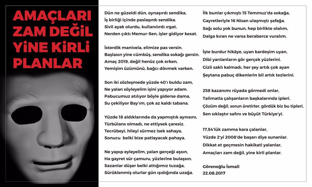 Kamu Sen’in Toplu Sözleşme Şiirine Memur Sen’den Şiirli Cevap geldi.