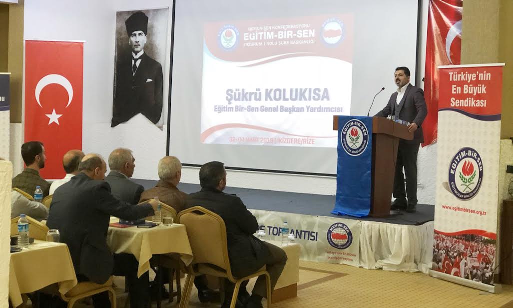 Erzurum 1 No’lu Şube’nin Rize’de düzenlediği ‘Genişletilmiş Eğitim ve İstişare Toplantısı’nda konuşan Şükrü Kolukısa, teşkilat içi eğitime önem, istişareye öncelik veren bir sendika olduklarını ifade ederek, “Eğitime önem veriyoruz; çünkü hedeflerimizi sağlamanın yolu, tecrübe ve bilgi birikimi kadar sürekli eğitime de ihtiyaç duyulduğundan hareketle, yönetim sorumluluğu üstlenen üyelerimizin nitelikli ve sürekli eğitim olarak yönetsel becerilerini geliştirmesini hedefleyen eğitimler almalarından geçmektedir. İstişareyi önemsiyoruz, çünkü ortak aklın ürünü olmayan her şey geçici, günübirlik ve yeni sorunlara gebedir. Sorunlarımızın çözümü, içinde bulunduğumuz sıkıntılı durum, geleceğimiz ancak iyi bir eğitimle, istişareye dayanan kararlar, uzun vadeli politikalarla kurtulabilir. Bunun bilincinde olarak, sık sık eğitim ve istişare toplantılarında bir araya geliyoruz” şeklinde konuştu.