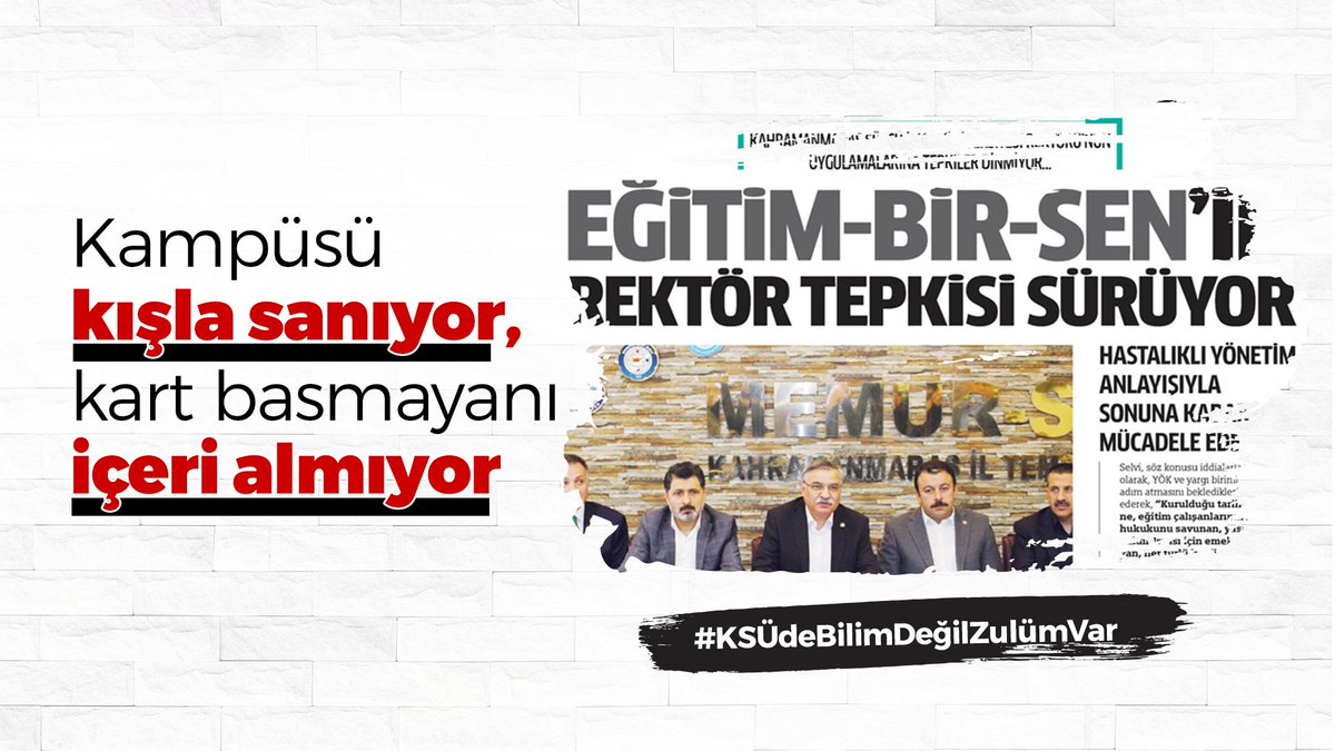 Üniversite yönetimi, bazı hukuksuz işleri perdelemek için Eğitim-Bir-Sen Şube yönetiminde olan fakülte sekreterlerini rotasyon adı altında sürmüştür. Denetleme Kurulu Üyemizi Tıp Fakültesi Sekreterliğinden alarak Ziraat Fakültesi Sekreterliğine, Yönetim Kurulu Yedek Üyemizi Eğitim Fakültesi Sekreterliğinden alarak önce İlahiyat Fakültesi Sekreterliğine görevlendirmiş, Sendikamızın hukuk mücadelesi sonucunda eski görev yerine verilmesi gerekirken, hukuksuz bir şekilde Güzel Sanatlar Fakültesi Sekreterliğine görevlendirmiştir. Diğer taraftan, bir üyemizi İlahiyat Fakültesi Sekreterliğinden alarak 160 km uzaklıktaki Elbistan Teknoloji Fakültesi’ne Fakülte Sekreteri olarak görevlendirmiş ve aynı şekilde üyemizi, hukuk mücadelesi neticesinde eski görevine iade etmeyerek yeniden aynı yere görevlendirip, hakkında soruşturma açmış, baskı ile üyemizin emekli olmasına neden olmuştur. Ayrıca, Şube Disiplin Kurulu Başkanımıza soruşturma açıp, uyarma cezası vermiş, Şube Denetleme Kurulu Üyemize hem soruşturma açmış hem de profesörlük kadrosunu vermemiş; Şube Disiplin Kurulu Üyemizin sözleşmesini 6 ay uzatmış, Şube Denetleme Kurulu Üyemizi emekli olmaya zorlarken, Kadınlar Komisyonu Başkanımızın sözleşmesini, süresi geçtikten bir hafta sonra geriye dönük uzatmış ve önceki dönem Genel Başkan Yardımcımızı ise kadro olmayan bir birime görevlendirmiştir.