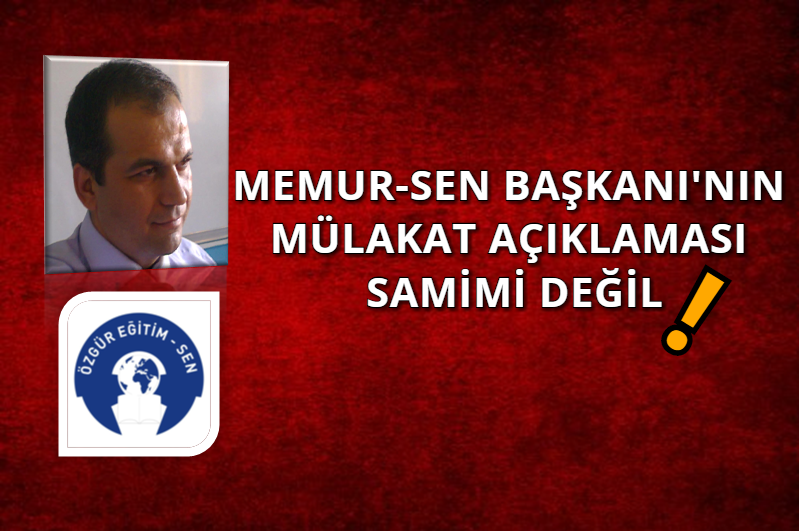 Bu infial üzerine Memur-Sen Başkanı Ali Yalçın‘ın konuya ilişkin açıklaması üzerinde durulmayı hak ediyor.Ali Yalçın kısaca”yıllarca okuyup, dirsek çürütüp, üstüne bir de KPSS’yi kazanıp, güvenlik soruşturmasına takılmayıp, mülakata takılması kabul edilebilir değil” diyor. Fakat bu doğruyu dile getiren kişinin Ali Yalçınolması bize ”bu ne perhiz bu ne lahana turşusu” sözlerini anımsattı. Zira yönetici atamalarından da bildiğimiz mülakat manipülasyonlarının öznesi olan eğitim sendikasının başkanından ”mülakata hayır”çıkışının gelmesi petrol şirketlerinin tabiatın kirlenmesinden şikayet etmesi gibi şey.