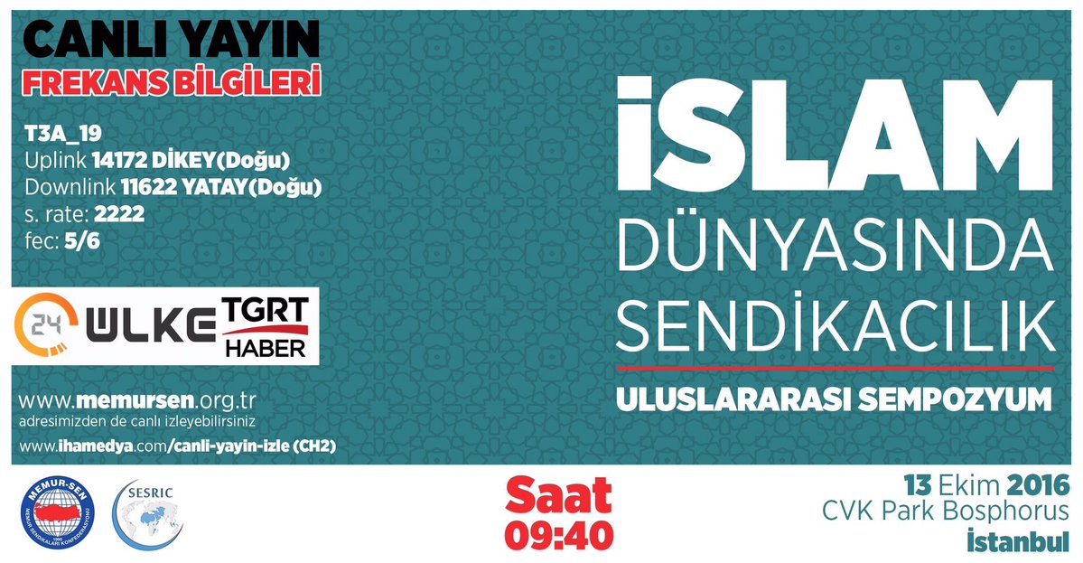 ‘İslam Dünyasında Sendikacılık’ Uluslararası Sempozyumu canlı yayın kanal ve frekans bilgileri.: 13 Ekim (Yarın) – 09:40’ta Canlı Yayın