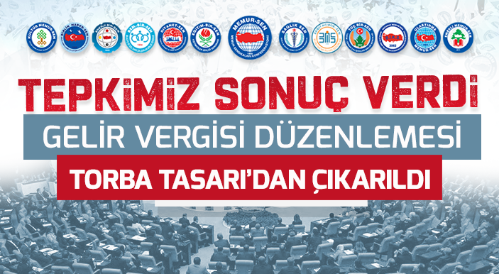 Memur-Sen Genel Başkanı Ali Yalçın’ın yazılı açıklama yayımlayarak eleştirdiği ve Memur-Sen’in, 81 İl Temsilcilikleri tarafından yapılan basın açıklamalarıyla tepki gösterdiği “Gelir Vergisi Düzenlemesi” torba tasarıdan çıkarıldı.