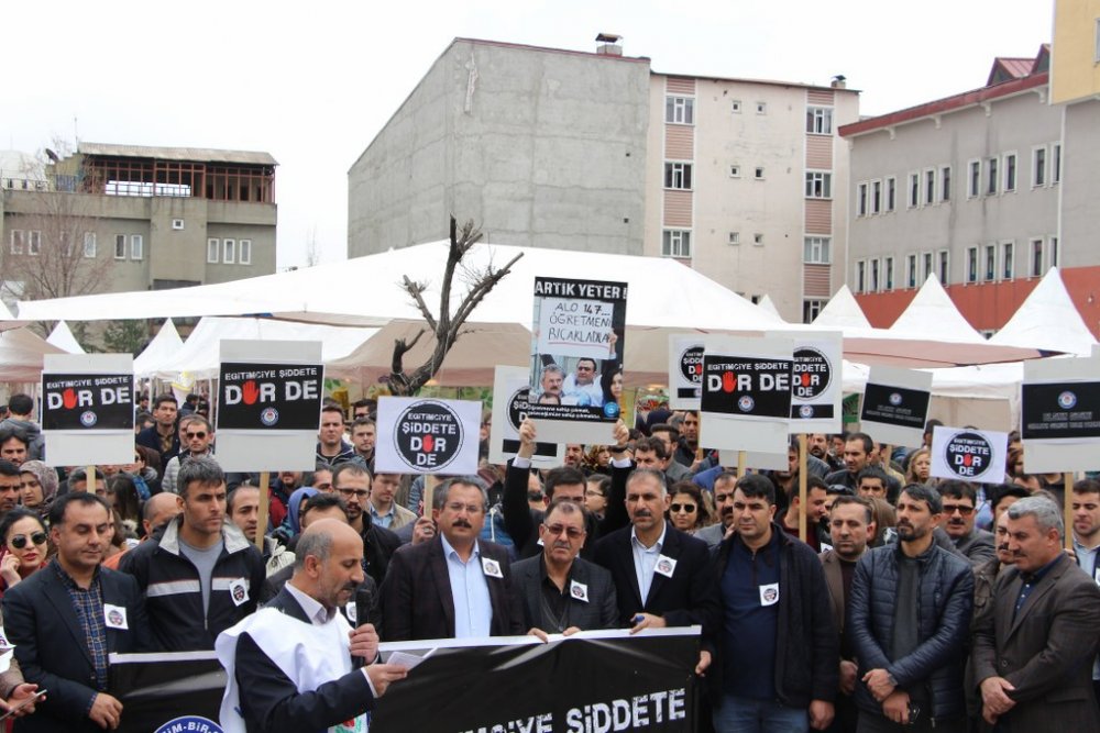 Harekete geçmek için daha kaç eğitimcimizin darbedilmesi, yaralanması ve öldürülmesi gerekir? Millî Eğitim Bakanlığı bu tür olaylarda sessiz kalmamalı, personeline sahip çıkmalı, gerekli açıklamaları yapmalı, gerekli adımları atacak iradeyi ortaya koymalıdır. Şiddete karşı kayıtsız şartsız öğretmenlerimizin yanındayız Biz öğretmenlerimizi hedef alan bütün saldırılar sona erdirilinceye, kanlı, karanlık bu şuursuzluk son buluncaya kadar, herkesi sorumluluk almaya davet ediyoruz.