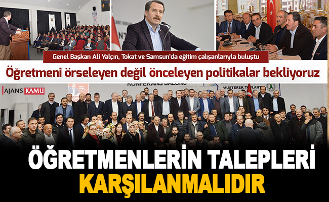 Ali Yalçın, Tokat ve Samsun/Çarşamba’da eğitim çalışanlarıyla buluştu. Sendikal çalışmalara ve gündeme ilişkin açıklamalarda bulunan Yalçın, aydınlık bir geleceğin eğitimden geçtiğini ifade ederek, “Sorunlarımızın çözümü nitelikli bir eğitimden, işinin başına huzurlu bir şekilde giden öğretmenlerin varlığından geçmektedir. Sorunlarla boğuşan, şamaroğlanına döndürülen, moral ve motivasyonu sıfırlanan bir öğretmenden başarılı ve iyi insan yetiştirmek beyhudedir. Öğretmenlerin sorunlarını çözmeden eğitimin sorunlarını da çözemeyiz. Öğrencilerini daha iyi yetiştirebilmesi için öğretmene zemin hazırlanmalı, maddi ve manevi anlamda sorunları giderilmeli, başarısızlıkla sonuçlanan uygulamaların faturası öğretmene kesilmemelidir” şeklinde konuştu.