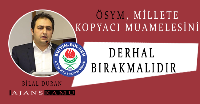 Eğitim Bir Sen İstanbul 4 Nolu Şube Başkan Yardımcısı Bilal DURAN: ‘ÖSYM Millete Kopyacı Muamelesini Derhal Bırakmalıdır’ diyerek ironik bir yazı kaleme aldı.