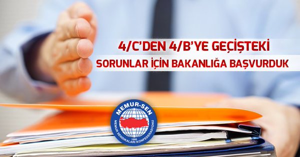 Memur-Sen, 4/C’li personelin 4/B statüsüne geçişine ilişkin yasal ve idari düzenlemeler yapılması için Bakanlığa başvurdu.