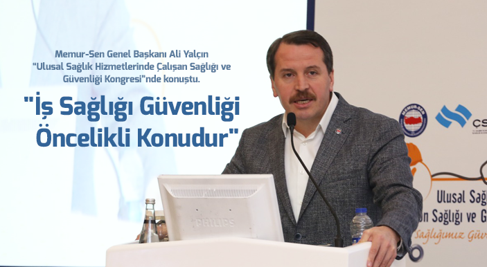 'Ulusal Sağlık Hizmetlerinde Çalışan Sağlığı ve Güvenliği Kongresi'nde konuşan Memur-Sen Genel Başkanı Ali Yalçın, iş kazaları ve bu kazalarda hayatını…