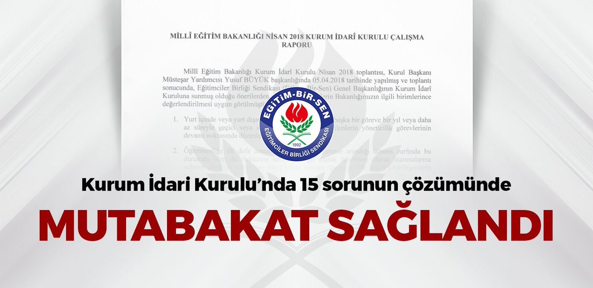 Millî Eğitim Bakanlığı Kurum İdari Kurulu (KİK) Nisan 2018 Çalışma Raporu imzalandı. 15 maddede mutabakat sağlanırken; bazı taleplere hiçbir gerekçe…