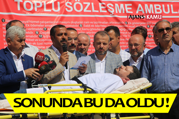 Metin Memiş, konuşmasının ardından sağlık çalışanlarının taleplerini içeren dosyayı, sedyedeki sağlık ve sosyal hizmet çalışanlarını temsil eden kişiye verdi. Daha sonra üzerinde Toplu Sözleşme Ambulansı’ yazan ambulansla toplu sözleşmede görüşmek üzere Çalışma ve Sosyal Güvenlik Bakanlığı’na götürdü.