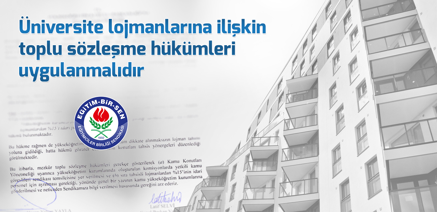 Eğitim-Bir-Sen olarak, Yükseköğretim Kurulu’na (YÖK) başvuruda bulunarak, toplu sözleşme hükümleri gerekçe gösterilerek, Kamu Konutları Yönetmeliği uyarınca yükseköğretim kurumlarında oluşturulan komisyonlarda yetkili kamu görevlileri sendikası temsilcisine yer verilmesi ve sıra tahsisli lojmanlardan yüzde 15’inin idari personel için ayrılması gerektiği yönünde genel bir yazının kamu üniversitelerine gönderilmesini talep ettik.