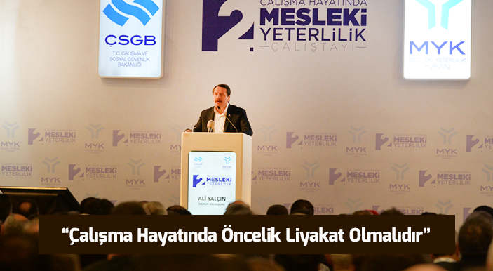 Yalçın, çalışma hayatında liyakate önem verilmesi gerektiğini vurgulayarak “MYK, hem mesleklerin standartlarını hem de mesleği icra edenlerin yeterliklerini belirlemek gibi, ‘nitelikli işgücü’ noktasında doğrudan sonuç üreten faaliyetleri nedeniyle stratejik öneme sahiptir. Çünkü malumunuz, toplumumuzun neredeyse çoğunluğunu oluşturan İslam inancının, doğrudan bireye yönelen emirlerinden biri ‘Emaneti, ehline veriniz’ ayetidir. Bu emrin içeriğindeki iki kavram, ‘emanet ve ehliyet’ genelinde Çalışma ve Sosyal Güvenlik Bakanlığı’nın özelde İş Kurumu ile MYK’nın faaliyet alanıdır” diye konuştu.