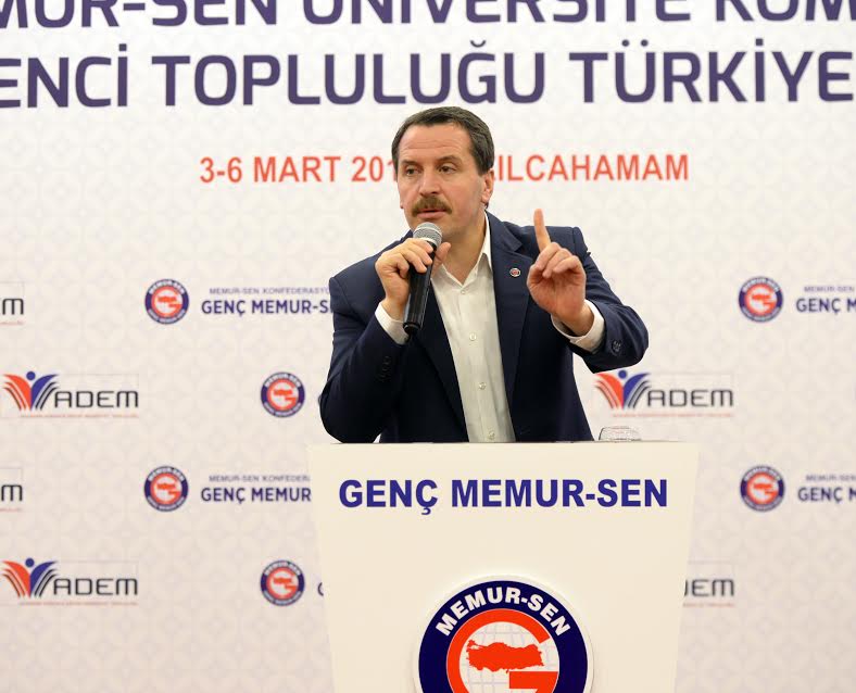 Memur-Sen Genel Başkanı Ali Yalçın sözlerini şu şekilde sürdürdü: “Genç Memur-Sen’imizin çok değerli lider kadrosu, sizlerle buluşmak kadar keyif veren, yarına ilişkin umut veren başka bir hazzı yaşamadık. Sizler bizim umudumuzsunuz. Bu coğrafyanın umudusunuz, medeniyet coğrafyasının yarına ilişkin umudunu temsil ediyorsunuz. Yarınlar sizlerin eliyle yükselecek, adaletli bir dünya sizlerin gayretiyle inşa olacaktır. Sizlerin ektiği tohumlar yarınlara ilişkin umudumuzu yeşertecektir”