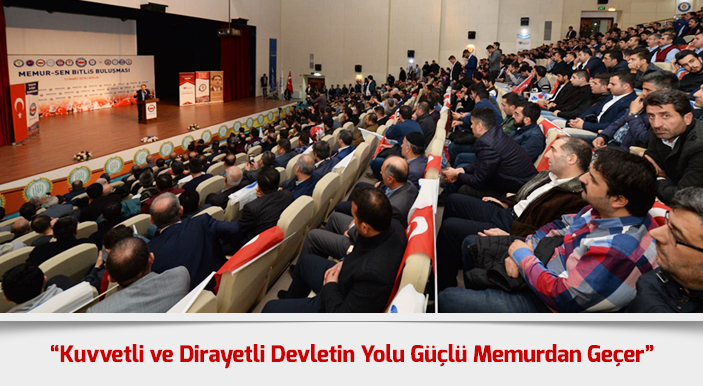 Memur-Sen Genel Başkanı Ali Yalçın, Bitlis’te düzenlenen teşkilat buluşması programına katıldı. Programa, Yalçın’ın yanı sıra Diyanet-Sen Genel Başkan Yardımcısı Cebrail Yakışır, Memur-Sen Bitlis İl Temsilcisi Cabir Durak, Memur-Sen ve bağlı sendikaların il ve ilçe yönetim kurulu üyeleri ile çok sayıda teşkilat mensubu katıldı Yalçın, güçlü devletin güçlü memurdan geçtiğini ifade ederek “Önümüzde önemli bir süreç var. Devletin yeniden yapılandırma süreci. Devlet kuvvetli ve kudretli bir devlet olmak durumunda. Bunu yolu güçlü memurdan geçer. Bunun yolu ehliyet ve liyakatten geçer. Devletin üst bürokrasisinin devlet yöneten irade ile aynı yöne bakmasından geçer. Yoksa çelme takan bürokrasinin olduğu yerde, işe su katan, darbecilerle iş tutan ve her on yıllık darbe sürecinde bu işe ırgatlık yapan bürokrasinin olduğu yerde bu devlet dirayetli bir devlet olamaz” ifadelerini kullandı. Kamuda Yapılanma Sürecinde İstişare ve Ortak Akıl Es Geçilmemeli
