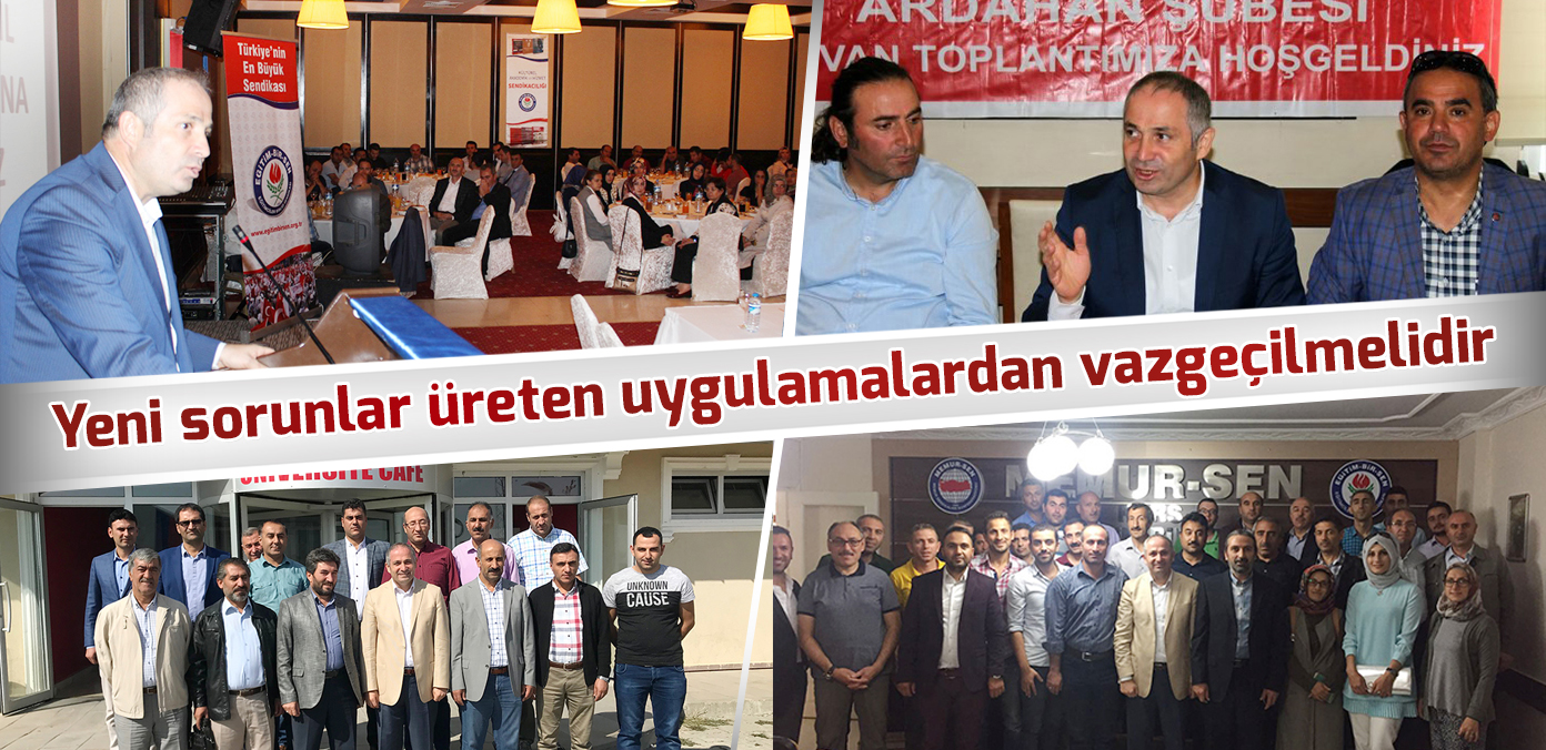 Hasan Yalçın Yayla, Erzurum, Ağrı, Kars, Ardahan ve Iğdır’da yapılan il divan toplantılarına katıldı. Eğitimin sorunlu alanlarına ve eğitim çalışanlarının gündemindeki konulara değinen Yayla, 668 sayılı Kanun Hükmünde Kararname’nin 4. maddesinin altıncı fıkrasıyla sözleşmeli öğretmenliğin tekrar uygulamaya konulduğuna dikkat çekerek, “Yakın zamanda tecrübe edilen ve sürdürülebilirliği olmadığı için vazgeçilen sözleşmeli öğretmenlik istihdamının tekrar hayata geçirilmesi büyük sıkıntıları beraberinde getirmiştir. Yeni sorunlara yol açan, ailelerin parçalanmasına neden olan sözleşmeli öğretmenlik istihdamı uygulamasına da, adalet duygusunu zedeleyen mülakatla öğretmen alımına da karşıyız. Öğretmen istihdamında güçlük çekilen bölgelerdeki sorunun çözümü; sözleşmeli öğretmenlik, yer değiştirme yasağı gibi geçici tedbirlerle değil, söz konusu bölgelerde öğretmenlerin kalıcı olarak görev yapmalarını teşvik edecek katkılarla mümkündür” şeklinde konuştu.