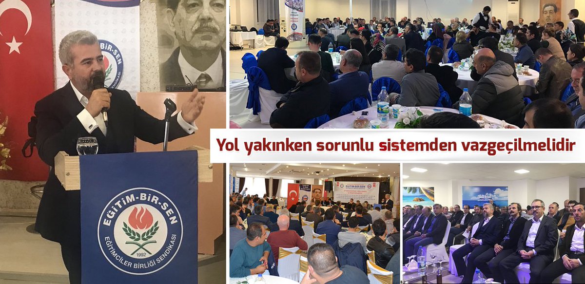 Olçum, sözlerini şöyle sürdürdü: “Vicdanları yaralayan, haksızlıklara neden olan mülakat, adalet duygusunu zedeleyen, iş barışını bozan sözleşmeli öğretmenlik, rayına bir türlü oturtulamayan yönetici atama, giderilemeyen öğretmen açığı, bir türlü çözülemeyen okulların bütçe sorunu gibi onlarca çözüm bekleyen sorunumuz var. Bu konularda atılan her adım, çözüm diye sunulan her sistem, dertlere deva olmadığı gibi, yeni sorunlara kapı açmaktadır. Zincirleme hataların sebebini sorgulamadan, farklı görüşlere ve eleştirilere kulak asmadan, istişare mekanizmasını işletmeden varacağımız yer doğru yer değildir.”