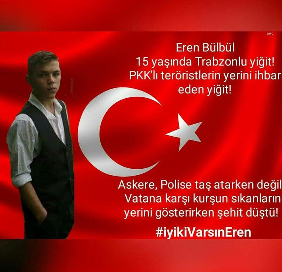 Teröristlerin açtığı ateş sonucu şehit olan Maçka Anadolu İmam Hatip Lisesi öğrencimiz Eren BÜLBÜL